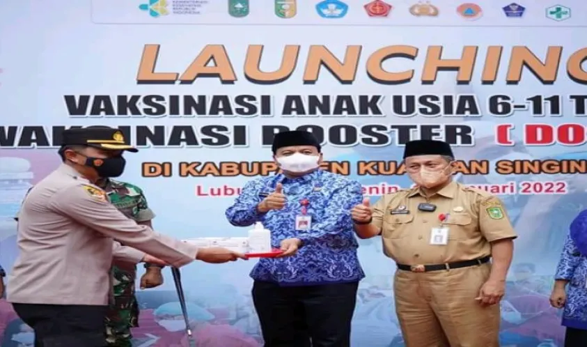 Indonesiainteraktif.com, Kuantan Singingi - Plt. Bupati Kuansing Drs.H.Suhardiman Amby, Ak.MM, launching penyuntikan Vaksinasi Covid-19 untuk anak Usia 6-11 tahun dan Vaksinasi Booster (Dosis III) di SD Negeri 001 Kel.Pasar Lubuk Jambi Kec.Kuantan Mudik Kab.Kuantan Singingi, Senin (17/01/2022).