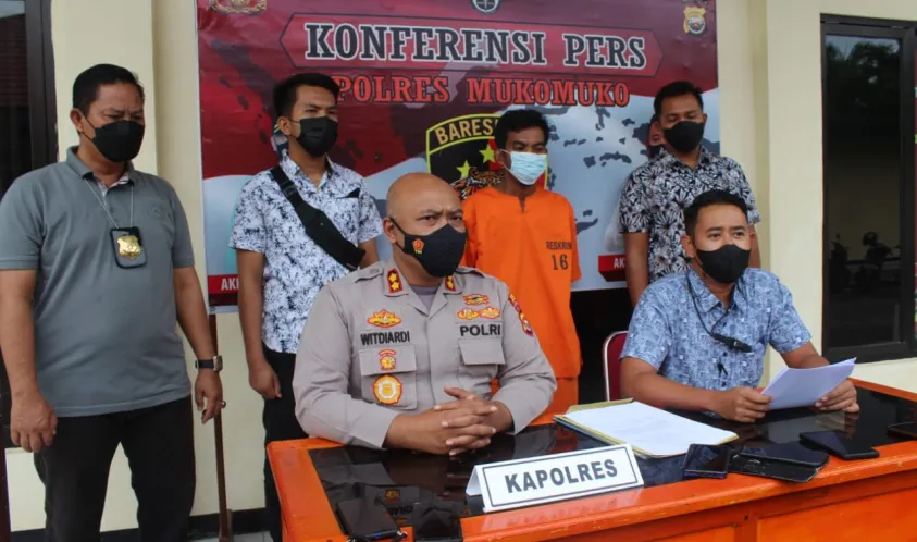 Kapolres Mukomuko AKBP Witdiardi,S.IK, MH didampingi oleh Kasat Reskrim Polres Mukomuko AKP Teguh Ari Aji S.IK, pada press conference hari Jum’at pagi (29/10/2021) di Mapolres Mukomuko menjelaskan bahwa pihaknya telah mengamankan pelaku dari 2 kasus dugaan tindak pidana persetubuhan anak dibawa umur di Kabupaten Mukomuko.
