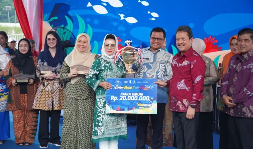 IndonesiaInteraktif.com, Riau -- Dalam rangkaian Puncak Hari Ikan Nasional 2023 yang di taja oleh Dirjen Penguatan Daya Saing Produk Kelautan dan Perikanan (PDSPKP) Kementerian Kelautan dan Perikanan (KKP), Provinsi Riau berhasil meraih juara umum nasional lomba masak serba ikan tingkat nasional. Provinsi Riau yang diwakili oleh Kabupaten Rokan Hulu (Rohul) berhasil mengangkat tema bahan bahan keluarga lokal umbut kelapa sawit, bunga labu sebagai bahan dasar dimasak dengan ikan kembung.