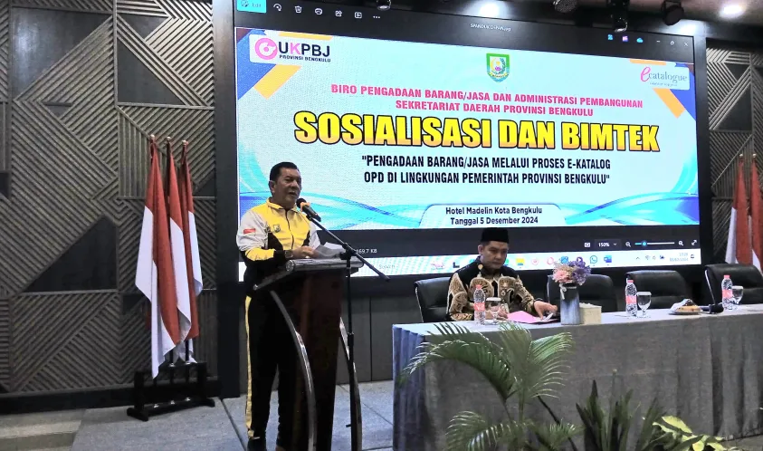 IndonesiaInteraktif.com, Bengkulu -- Pemerintah Provinsi Bengkulu melalui Biro Pengadaan Barang/Jasa dan Administrasi Pembangunan menggelar Sosialisasi dan Bimbingan Teknis (Bimtek) Pengadaan Barang/Jasa melalui e-Katalog di salah satu hotel di Kota Bengkulu, Kamis (5/12).