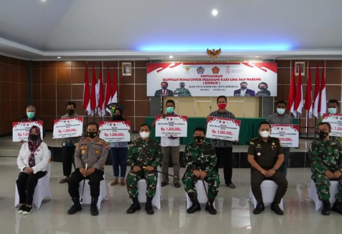 Danrem 041/ Gamas Salurkan Bantuan Tunai TNI Untuk Pedagang BTPKLW