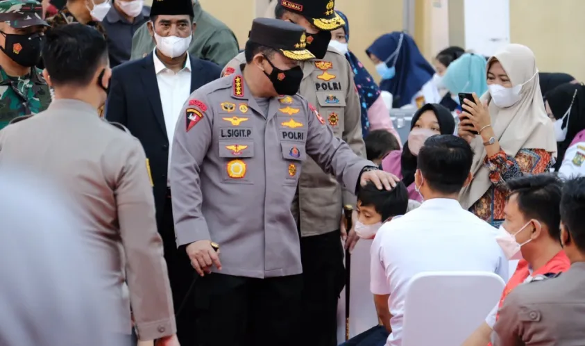 Indonesiainteraktif.com, Pekanbaru - Kepala Kepolisian Republik Indonesia Jenderal Polisi Drs. Listyo Sigit Prabowo, M.Si., meninjau pelaksanaan akselerasi vaksinasi massal di Kabupaten Kampar, Riau, Jumat (25/02/2022).