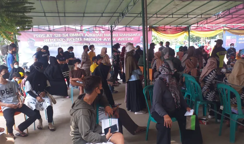 Depok - Kegiatan vaksin Covid-19 yang diselenggarakan TMMD ke-122 tahun 2021 mendapat simpati anggota DPRD Kota Depok dan warga di lingkungan setempat.