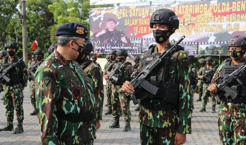 Indonesiainteraktif.com, Bengkulu - Pantau kesiapsiagaan pasukan Brimob Polri Polda Bengkulu dalam menghadapi berbagai tugas serta tantangan dengan intensitas tinggi ke depan, Kapolda Bengkulu Irjen Pol. Drs. Guntur Setyanto, M.Si memimpin Apel Kesiapan Personil dan peralatan yang di gelar di Lapangan Apel Sat Brimob Polda Bengkulu, Sabtu (02/10/2021).