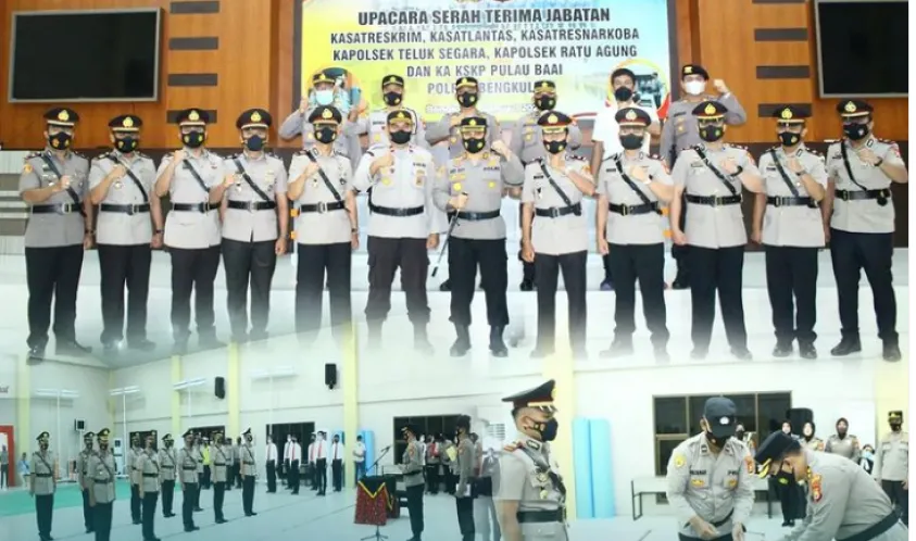 Upacara Serah Terima Jabatan Kasat Reskrim, Kasat Lantas, Kasatres Narkoba, Kapolsek Teluk Segara dan Kapolsek KSKP dihadiri Wakapolres, Para Pju, Personil Polres Bengkulu dan dihadiri Kapolsek Jajaran, Rabu, (05/01/2022).