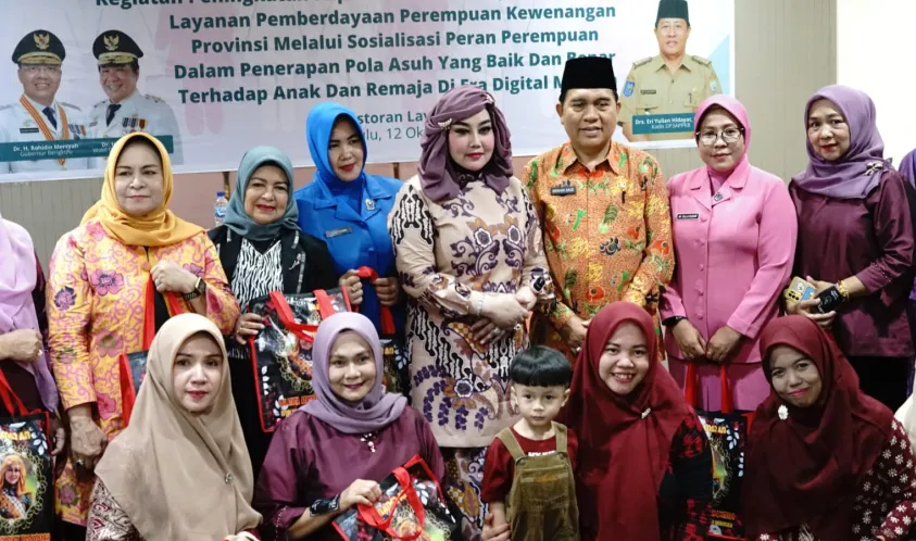 IndonesiaInteraktif.com, Bengkulu -- Ketua Badan Kerja Sama Organisasi Wanita (BKOW) Provinsi Bengkulu, Anita Rosjonsyah membuka secara resmi sosialisasi peran perempuan dalam penerapan pola asuh anak dan remaja di era digital di Lavenrice Kota Bengkulu, Kamis (12/10/2023).