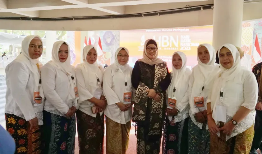 IndonesiaInteraktif.com, Bengkulu -- Ketua Dekranasda Provinsi Bengkulu Derta Rohidin menghadiri puncak peringatan Hari Batik Nasional (HBN) 2023 "Membatik Bersama" perajin seluruh Indonesia dengan tema "Batik Bangkit" di Musium Batik Indonesia TMII, Senin (2/10).