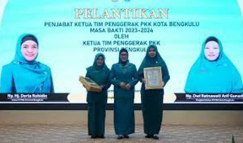 IndonesiaInteraktif.com, Bengkulu -- Ketua TP PKK Provinsi Bengkulu Derta Rohidin melantik Dwi Ratnawati Arif Gunadi sebagai Penjabat Ketua TP PKK Kota Bengkulu di Balai Raya Semarak, Selasa (26/9). Pada kesempatan ini juga, sekaligus dilakukan serah terima jabatan dari Khairunnisa Helmi Hasan ke Dwi Ratnawati Arif Gunadi.