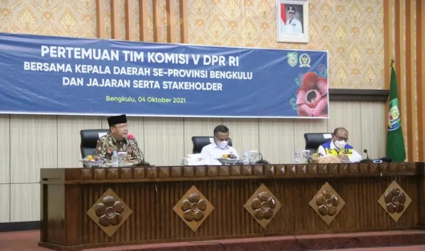 Hal tersebut disampaikan Gubernur Bengkulu Rohidin Mersyah pimpin Pertemuan Tim Komisi V DPR RI dengan Gubernur Bengkulu Beserta Jajaran, Bupati Walikota se Provinsi Bengkulu dan Kementrian Terkait, di Ruang Pola Provinsi Bengkulu, Senin (04/10/2021).
