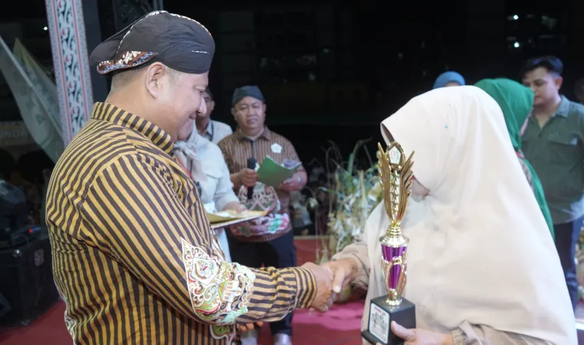 Meski cuaca kurang bersahabat, masyarakat tetap memadati area lapangan untuk menikmati beragam pertunjukan khas Jawa seperti tarian tradisional, kesenian reog, dan wayang kulit yang disambut meriah dengan tepuk tangan penonton.