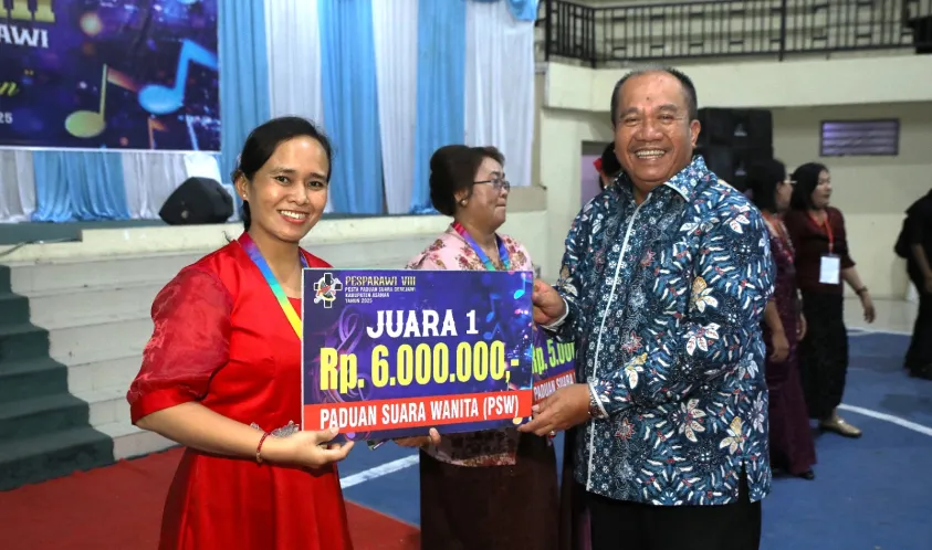 Indonesiainteraktif.com, Asahan - Pemerintah Kabupaten Asahan memberikan apresiasi atas pelaksanaan Pesta Paduan Suara Gerejawi (Pesparawi) VIII Kabupaten Asahan Tahun 2025 yang berlangsung meriah di Gedung Serbaguna Kisaran. Kegiatan yang digelar selama dua hari, 24–25 Oktober 2025, dihadiri langsung oleh Bupati Asahan Taufik Zainal Abidin, S.Sos., M.Si., Ketua DPRD Asahan yang diwakili oleh Dahniel Banjarnahor (Anggota DPRD Fraksi PDI Perjuangan), unsur Forkopimda, OPD, serta para tokoh gerejawi.