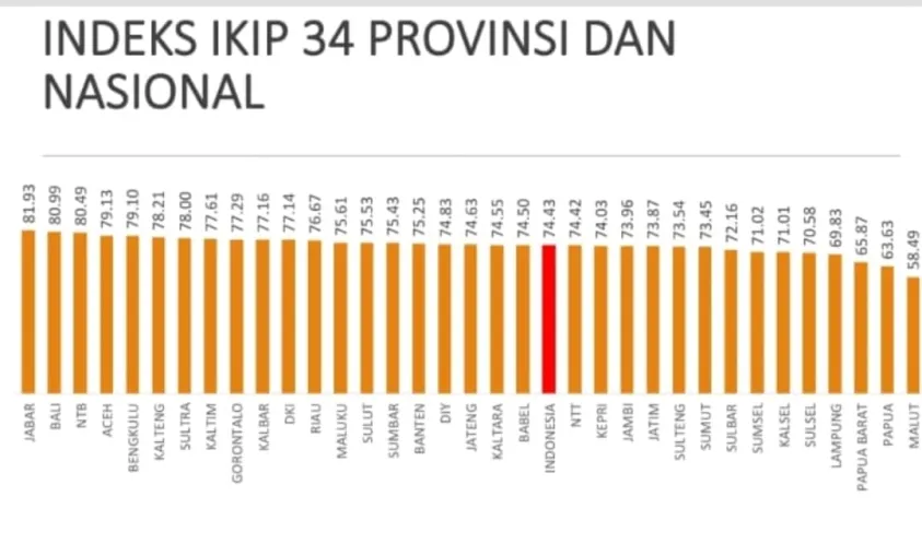 Posisi tertinggi IKIP 2022 pada ketegori baik diperoleh Jawa Barat (81,93), Bali (80,99), dan NTB (80,49).