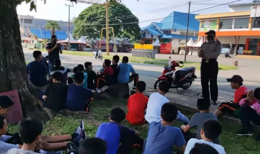 Menemukan sekumpulan remaja dan pelajar yang sedang beristirahat disekitar kawasan Lapangan Merdeka Kota Bintuhan, AIPDA Nurkholis kemudian langsung menghampiri dan memberikan himbauan harkamtibmas disertai dengan penerapan protokol kesehatan (prokes) sebagai upaya pencegahan dan penanggulangan pandemi covid-19.