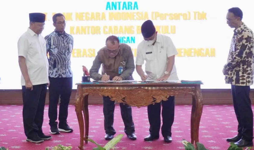 Indonesiainteraktif.com, Bengkulu - Pemerintah Provinsi Bengkulu bersama PT. Bank Negara Indonesia (Persero) Tbk menandatangani MoU dan PKS (Perjanjian Kerjasama) terkait peningkatan tata kelola pemerintahan berbasis digital, juga terkait dengan jasa layanan perbankan digital, melalui Program Smart Province pada Rabu (24/08/2022).