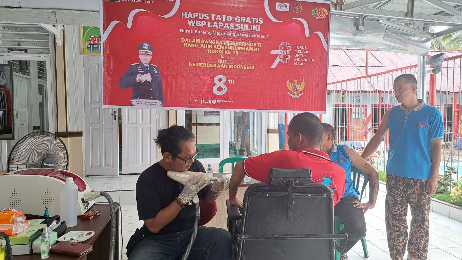 Kegiatan Hapus Tato Gratis disambut antusias oleh Warga Binaan Pemasyarakatan (WBP) Lapas Suliki. sebanyak 15 warga binaan melakukan hapus tato, mereka berkeinginan berubah agar stigma negatif tidak melekat pada dirinya ketika sudah bebas dari lapas nantinya.