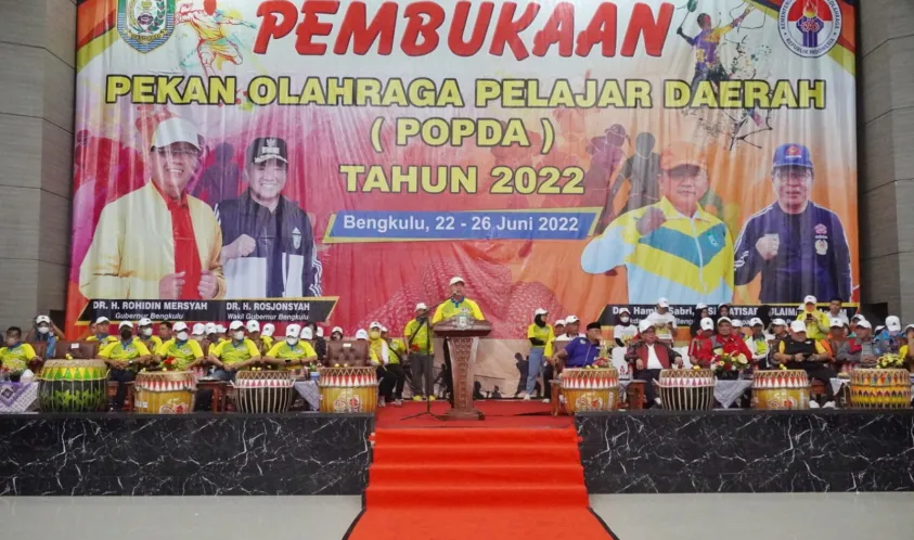 Indonesiainteraktif.com, Bengkulu - Pekan Olahraga Pelajar Daerah (Popda) Tahun 2022 Provinsi Bengkulu dibuka secara resmi oleh Gubernur Bengkulu Rohidin Mersyah, di Gedung Balai Buntar Bengkulu, Rabu (22/06/2022).