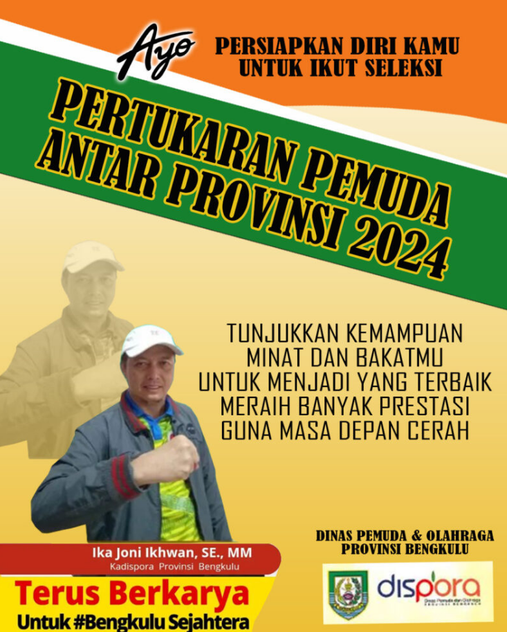 IndonesiaInteraktif.com, Bengkulu -- Kadispora Provinsi Bengkulu, Ika Joni Ikhwan, SE, mengajak kaum milenial di Provinsi Bengkulu untuk ikut serta dalam program seleksi Pertukaran Pemuda Antar Provinsi (PPAP) tahun 2024 yang akan segera dilaksanakan.
