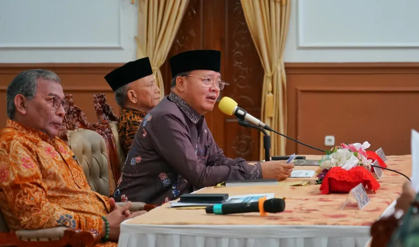 IndonesiaInteraktif.com, Bengkulu -- Gubernur Rohidin Mersyah memimpin rapat mediasi terkait atas Putusan Sela Mahkamah Konstitusi (MK) tentang sengketa batas Wilayah Kabupaten Lebong dan Kabupaten Bengkulu Utara di Gedung Balai Raya Semarak, Kamis (4/4).