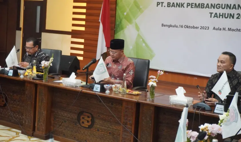 IndonesiaInteraktif.com, Bengkulu -- Rapat Umum Pemegang Saham (RUPS) Luar Biasa Bank Bengkulu digelar di Kantor Bank Bengkulu pada (16/10/2023) Senin Pàgi. Rapat Umum Pemegang Saham (RUPS) Bank Bengkulu dihadiri oleh Gubernur Bengkulu Rohidin Mersyah, Komisaris Bank Bengkulu, Bupati 9 Kabupaten serta Pj Walikota Bengkulu.