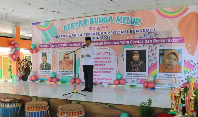 “Jika suatu bangsa diibaratkan rumah yang sangat besar, di mana pondasi dari rumah itu adalah anak-anak TK dan Paud ini. Jikalau pondasi rumah itu tidak kuat, maka dipastikan rumah itu nantinya bakal runtuh,” sebut Sekda Hamka Sabri, saat membuka secara resmi acara Gebyar Bunga Melur TK dan RA Dharmawanita Persatuan Provinsi Bengkulu, di Aula TK Dharmawanita Persatuan Provinsi Bengkulu, di Taman Remaja, Lingkar Timur Bengkulu, Rabu (16/03/2022).