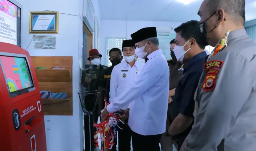 Indonesiainteraktif.com, Rejang Lebong - Guna menunjang pelayanan publik masyarakat Rejang Lebong berbasis tekhnologi yang efisien dan efektif, Bupati Rejang Lebong Drs. Syamsul Effendi, MM secara resmi membuka launching mesin Anjungan Dukcapil Mandiri (ADM) yang dihadiri unsur Forkopimda (Forum Koordinasi Pimpinan Daerah) dan OPD terkait di Kantor Dukcapil Rejang Lebong, Rabu (23/02/2022).
