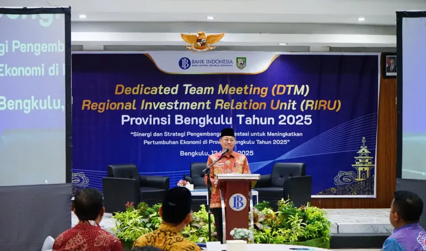 IndonesiaInteraktif.com, Bengkulu – Bank Indonesia Perwakilan Provinsi Bengkulu menggelar Dedicated Team Meeting (DTM) Regional Investment Relation Unit (RIRU) atau Pertemuan Tim Khusus (DTM) Unit Hubungan Penanaman Modal Daerah (RIRU) Provinsi Bengkulu Tahun 2025. Kegiatan ini berlangsung di salah satu hotel di kawasan Pantai Panjang, Bengkulu, pada Kamis (13/3).