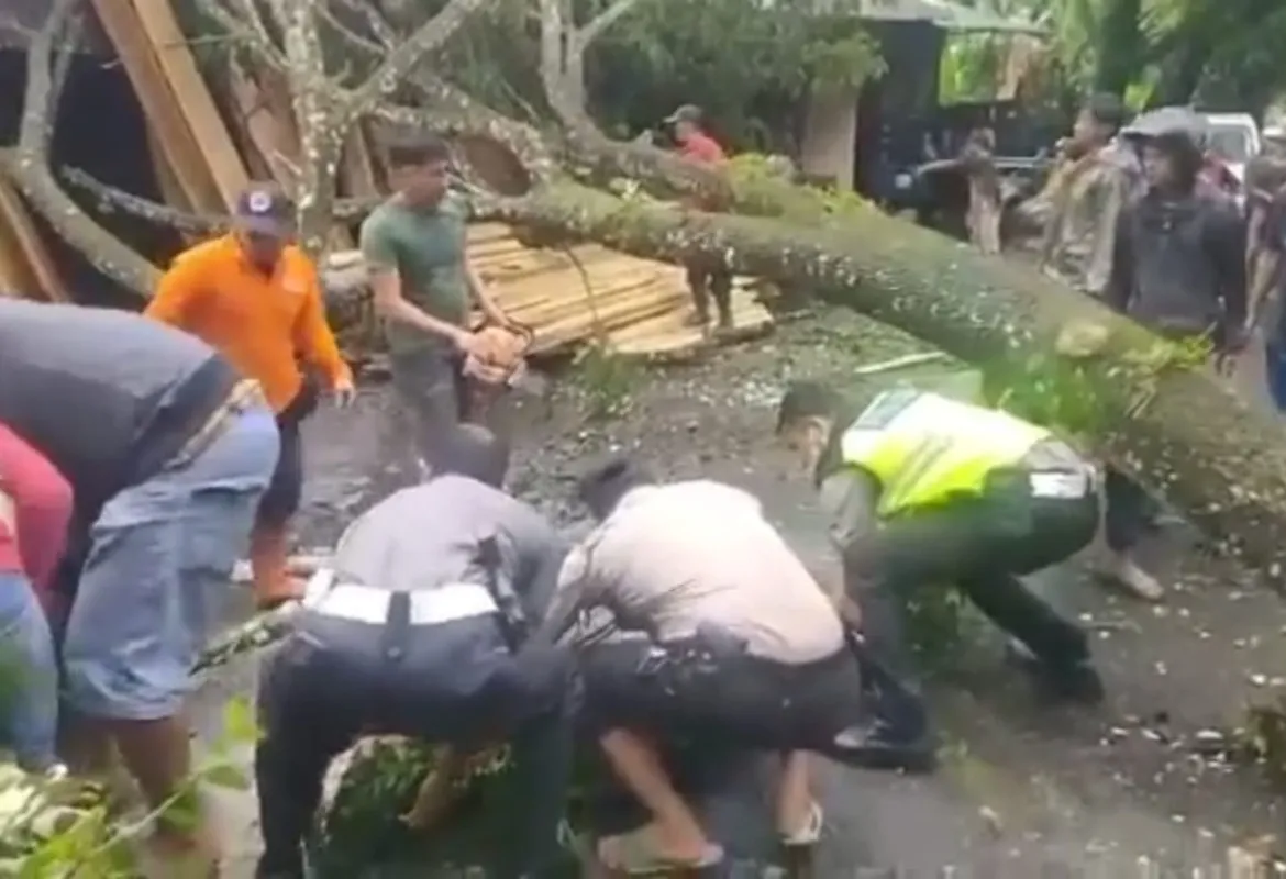 Polres Kepahiang Bersama BPBD Evakuasi Pohon Tumbang