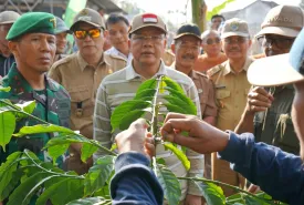 Gubernur Bengkulu Rohidin Mersyah bersama Pangdam II Sriwijaya dan Bupati Kepahiang, Melakukan Demplot Budidaya Kopi Robusta Melalui Teknik Replanting