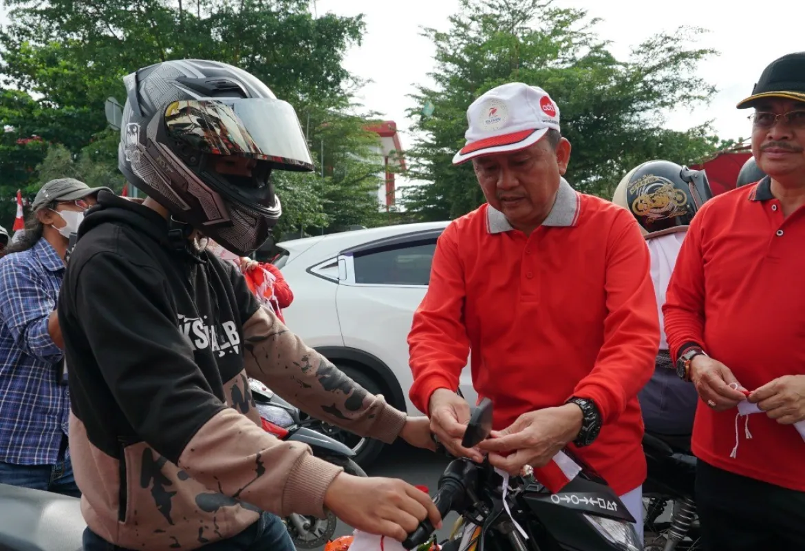 Sekda Hamka Sabri Ikuti Pembagian 5 Ribu Bendera Merah Putih Di Tanah Kelahiran Ibu Agung Fatmawati Soekarno