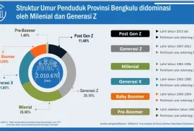 Indonesiainteraktif.com - Struktur umur penduduk Provinsi Bengkulu didominasi oleh Milenial dan Gene