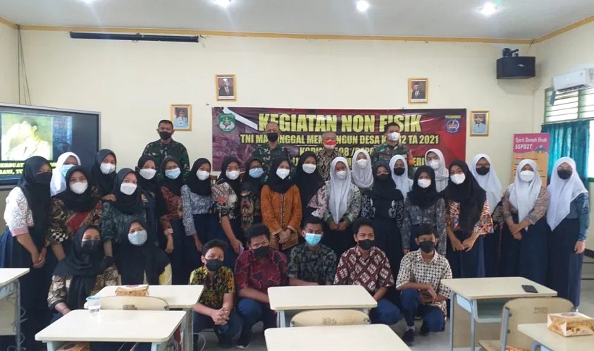 Depok-Satgas TNI Manunggal Membangun Desa (TMMD) Ke-112 tahun 2021 Kodim 0508/Depok bersama Dinas Kesehatan Kota Depok menggelar Sosialisasi 5 Pilar Sanitasi Total Berbasis Masyarakat (STBM) kepada siswa SMP Negeri 5 Depok, Kelurahan Bedahan Kecamatan Sawangan, Jumat (01/10/21). Dr.Hidayat, selaku Kepala Seksi Kesehatan Lingkungan (Kasi Kesling) Dinas Kesehatan Kota Depok dalam materinya menyampaikan, STBM adalah pendekatan untuk mengubah perilaku higienis dan saniter melalui pemberdayaan masyarakat dengan cara pemicuan.