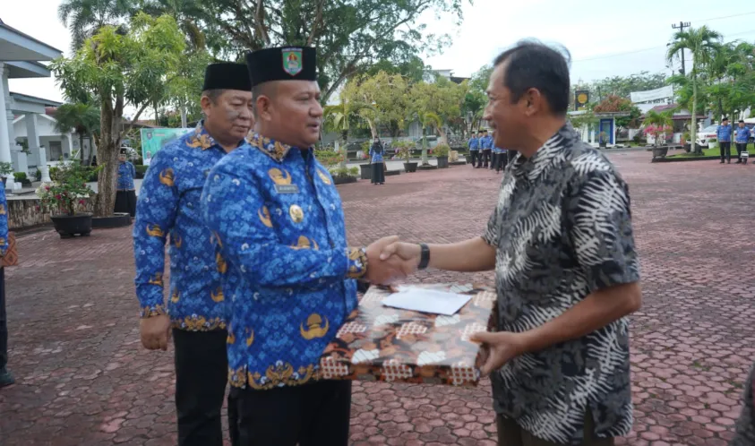 Wakil Bupati Kabupaten Asahan, Rianto, S.H., M.A.P., memimpin Apel Hari Kesadaran Nasional yang diikuti Sekretaris Daerah, para Asisten, kepala OPD, ASN, dan PPPK di lingkungan Pemerintah Kabupaten Asahan di halaman Kantor Bupati Asahan, Rabu pagi.