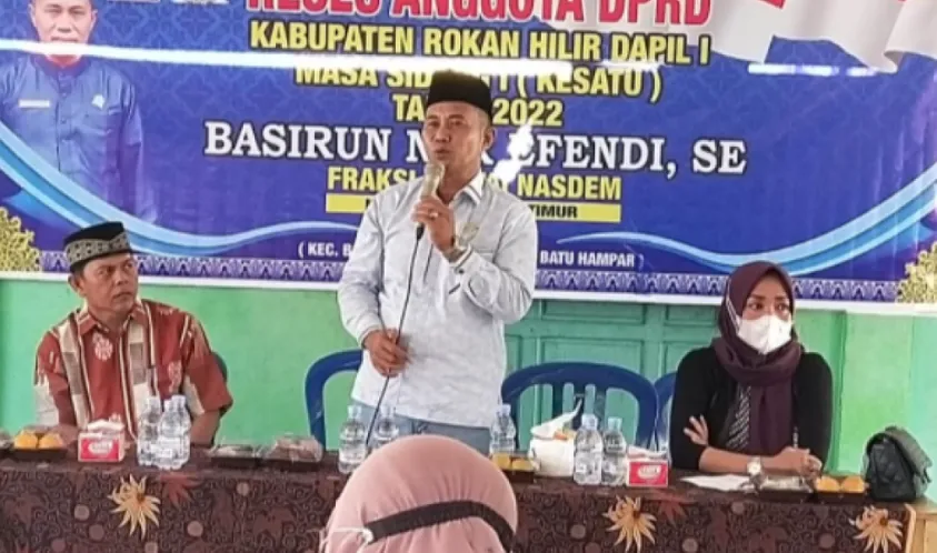 Indonesiainteraktif.com, Rokan Hilir - Basiran Nur Efendi SE Anggota Dewan Perwakilan Rakyat Daerah (DPRD) Kabupaten Rokan Hilir dari Partai Nasdem melaksanakan Reses masa sidang kesatu Tahun 2022, Kegiatan Reses tersebut berlangsung di Jalan Selamat Kelurahan Bagan Timur, Minggu (13/03/2022).