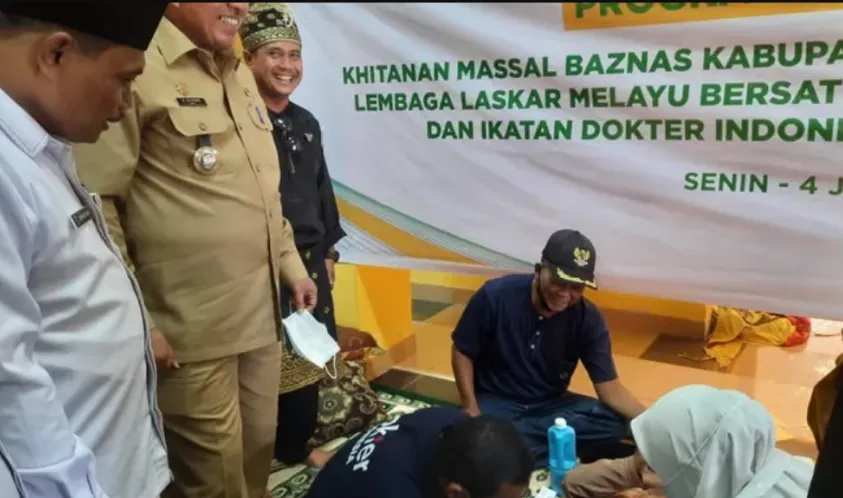Indonesiainteraktif.com, Siak - Badan Amil Zakat Nasional (BAZNas) Kabupaten Siak, bekerjasama dengan Lembaga Adat Melayu Riau (LAMR) Kabupaten Siak, Ikatan Dokter Indonesia (IDI) Siak, dan Laskar Melayu Bersatu (LMB) menggelar khitanan massal ke 100 anak kurang mampu di dua kecamatan.