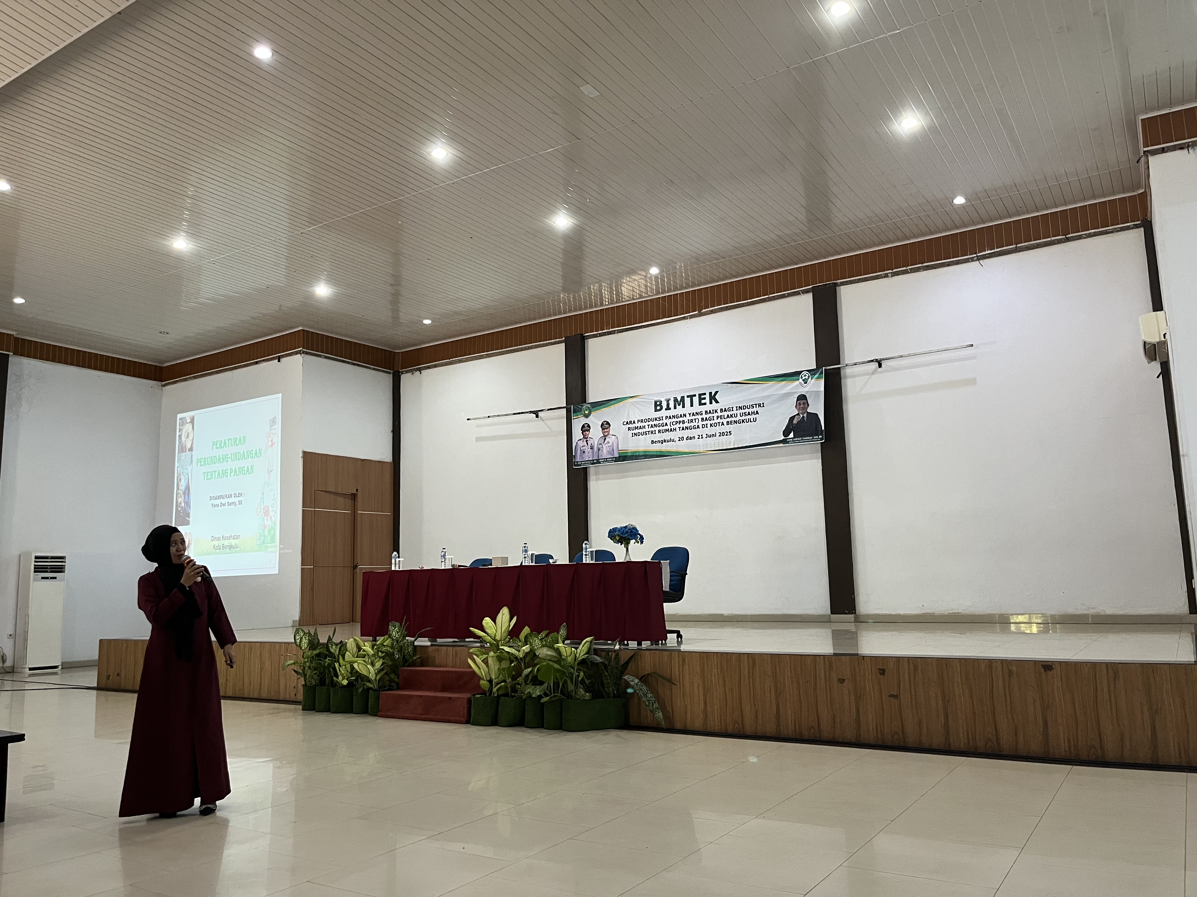 Kegiatan ini bertujuan meningkatkan pemahaman dan kemampuan pelaku usaha dalam memproduksi pangan yang aman, bermutu, dan sesuai standar kesehatan. Bimtek menghadirkan pemateri Ibu Yona Dwi Santi, SS, yang membahas secara mendalam mengenai standar keamanan pangan, sanitasi produksi, serta tata cara pengemasan dan pelabelan produk yang sesuai regulasi.