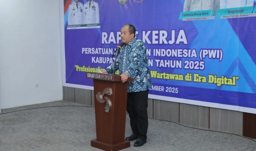 Indonesiainteraktif.com, Asahan — Di tengah derasnya arus informasi digital, Bupati Asahan Taufik Zainal Abidin, S.Sos., M.Si., menegaskan pentingnya peran wartawan sebagai penyeimbang informasi publik. Pesan itu ia sampaikan saat membuka Rapat Kerja (Raker) Persatuan Wartawan Indonesia (PWI) Kabupaten Asahan bertema “Profesional dan Kolaborasi Wartawan di Era Digital.”