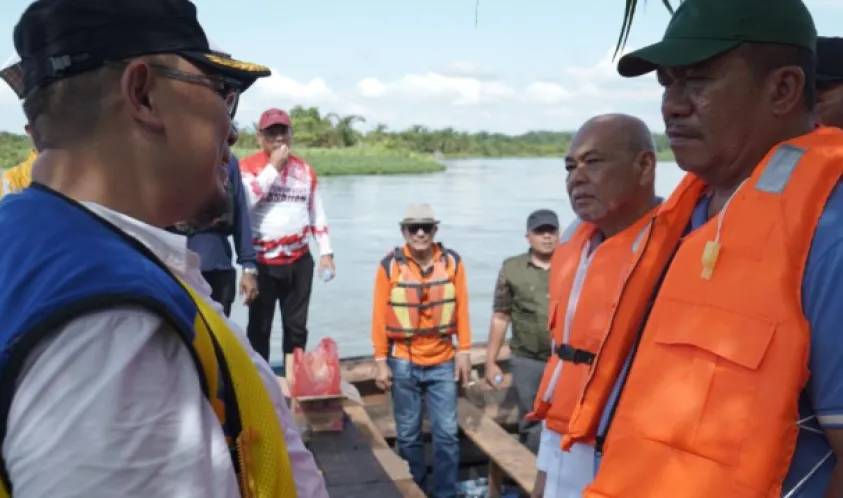 Bupati dengan rombongan selanjutnya melaksanakan peninjauan ke lokasi tanggul yang jebol menggunakan perahu sampan, situasi tanggul yang jebol mengakibatkan melimpahnya air ke lahan perkebunan dan pemukiman warga. Berdasarkan pengamatan situasi dilapangan pihak BWSS II Medan, menyampaikan akan segera melakukan rekonstruksi perbaikan tanggul dan meminta bantuan dan dukungan pemerintah setempat agar lahan masyarakat yang terimbas dari kegiatan rekonstruksi lahan tersebut bisa diberikan tanpa menuntut ganti rugi.