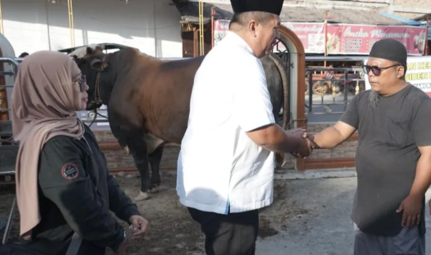 Indonesiainteraktif.com, Asahan -- Bupati Asahan, H. Taufik Zainal Abidin Siregar, S.Sos., M.Si didampingi Wakil Bupati Asahan, H. Rianto, S.H., M.AP secara resmi menyerahkan hewan kurban dari Presiden Republik Indonesia, H. Prabowo Subianto, kepada Panitia Qurban Masjid Raya Kisaran pada Sabtu, 7 Juni 2025.