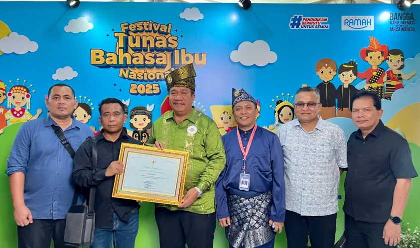 Penghargaan tersebut diserahkan langsung oleh Menteri Pendidikan Dasar dan Menengah, Prof. Dr. Abdul Mu’ti, M.Ed dalam acara Festival Tunas Bahasa Ibu Nasional (FBIN) Tahun 2025 yang berlangsung di Gedung Merah Putih, Bojongsari Depok provinsi Jawa Barat pada Senin, (26/05/ 2025).