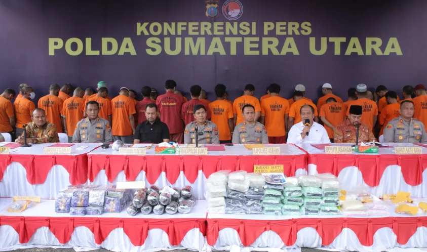 Dukungan ini disampaikan oleh Bupati Asahan saat mengikuti konferensi Pers Pengungkapan Kasus Narkoba Ditresnarkoba Polda Sumatera Utara, Satresnarkoba Polres Asahan, Tanjung Balai dan Batubara, Kamis (08/05/2025) di Polres Asahan.