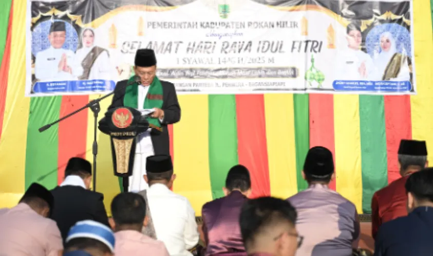 “Atas nama pribadi dan Pemerintah Kabupaten Rokan Hilir, kami mengucapkan selamat hari raya Idul Fitri 1446 Hijriyah, mohon maaf lahir dan batin,” ucap Bupati H. Bistamam.