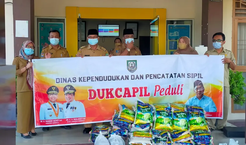Indonesiainteraktif.com, Bengkulu - Dalam rangka peduli dan berbagi, Dinas Kependudukan dan Catatan Sipil bagikan 57 paket sembako kepada masyarakat.