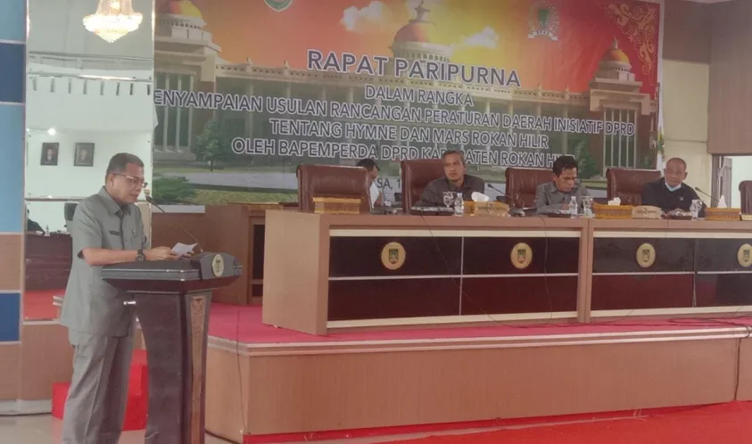 Dia menjelaskan bahwa DPRD Kabupaten Rokan Hilir melalui Perda DPRD Kabupaten Rokan Hilir akan mengusulkan Perda tentang Hymne dan Mar. Sesuai surat nomor 5 tanggal 20 September 2021 dan surat nomor 6 tanggal 23 September untuk disampaikan secara resmi dalam rapat paripurna DPRD Kabupaten Rokan Hilir.