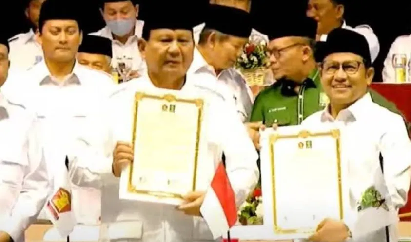 Sebelumnya, Ketua Umum Partai Gerindra Prabowo Subianto dan Ketua Umum Partai Kebangkitan Bangsa Muhaimin Iskandar menandatangani piagam deklarasi koalisi di pemilu 2024.
