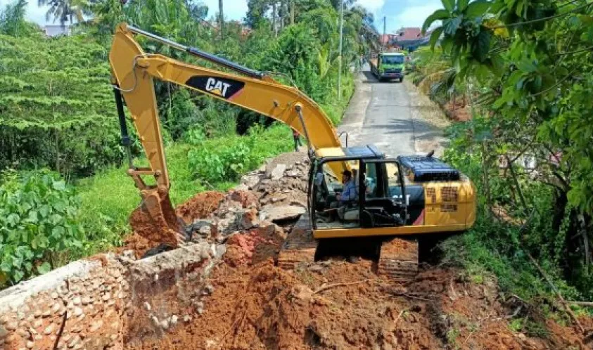 Sabtu siang dilokasi longsor tepatnya jalan hibrida 13 menuju ke arah kelurahan sumur dewa, sudah terlihat alat berat jenis ekskavator bekerja digunakan untuk mengondisikan material longsoran yang menghubungkan jalan pemukiman setempat.