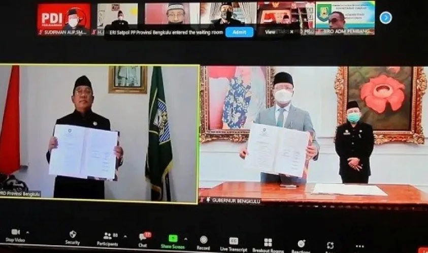 Nota Kesepakatan KUA dan PPAS R-APBD Provinsi Bengkulu Tahun Anggaran 2022 ditandatangani oleh Pimpinan Dewan Provinsi Ihsan Fajri dan Gubernur Bengkulu Rohidin Mersyah secara virtual.