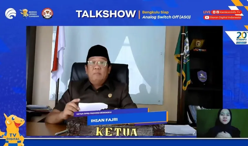 Hal itu Ia sampaikan pada Talkshow “Bengkulu Siap Analog Switch Off (ASO)” yang diadakan oleh Kementerian Komunikasi dan Informasi (Kemenkominfo) secara virtual, Kamis (09/09/21).
