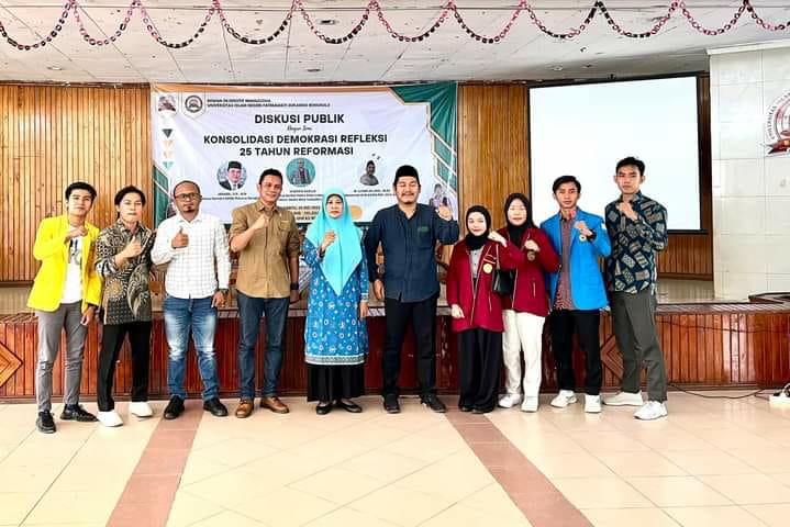 IndonesiaInteraktif.com - Provinsi Bengkulu, Jonaidi, SP, menjadi narasumber Diskusi Publik di Kampus Universitas Islam Negri Fatmawati Sukarno (UINFAS) Bengkulu dengan tema “Konsolidasi Demokrasi Refleksi 25 Tahun Demokrasi”. Acara tersebut berlangsung di Gedung Audit Kampus UINFAS Bengkulu itu sendiri. Sabtu pagi (20/05/2023).