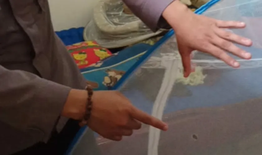 Kejadian ini diduga peluru nyasar dari warga yang sedang berburu kelelawar dimalam hari dari pohon durian disekitar rumah korban, sehingga peluru nyasar dan menembus atap seng rumah dan mengenai kaki korban.