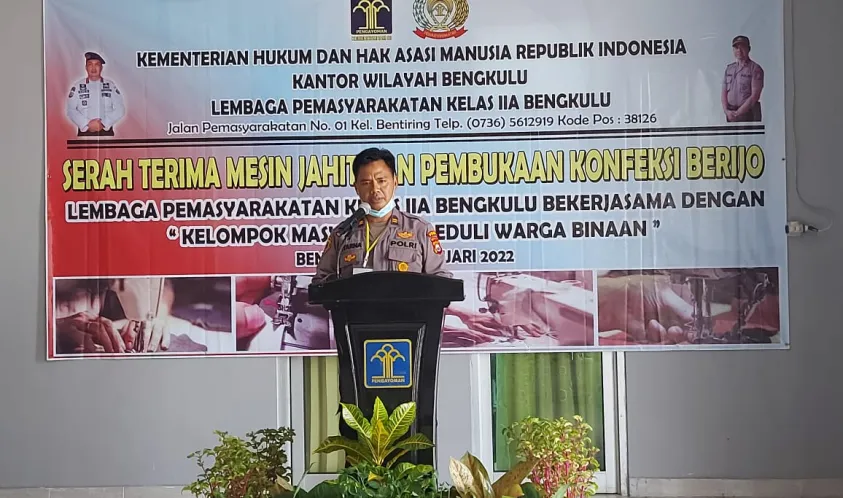 Mesin jahit dan obras diserahkan langsung Iptu Nyarna kepada Kepala Lapas Kelas IIA Bengkulu Ade Kusmanto sekaligus pembukaan konveksi yang diberi nama konveksi “BERIJO”. Ia berharap agar alat-alat konveksi ini dapat menjadi usaha bagi warga binaan baik yang masih berada di dalam Lapas maupun setelah keluar dari Lapas nantinya.